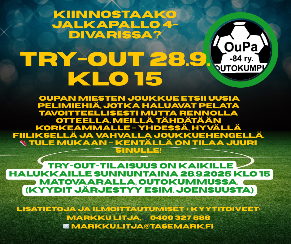Tervetuloa mukaan TRY OUT -tilaisuuteen 29.8.25 Outokumpuun!